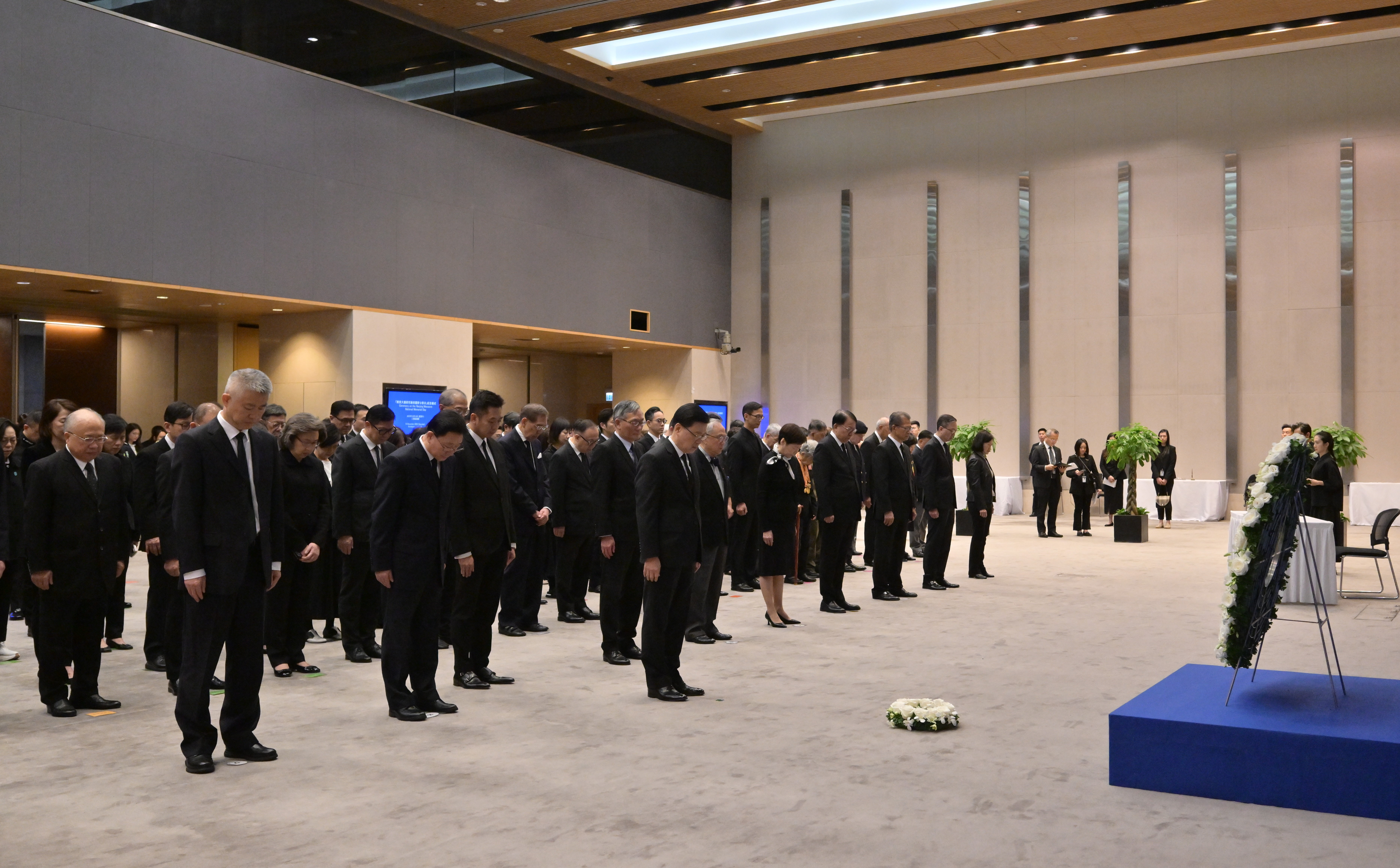 仪式10时开始,全体人员肃立并奏唱国歌,之后默哀两分钟。李家超致献花圈,全体人员行鞠躬礼。李家超、周霁等出席人士逐一签署纪念册。