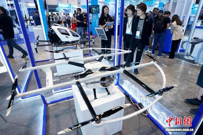 图为现场人士参观安徽一家企业展示的载人飞行器模型。中新网记者 张祥毅 摄
