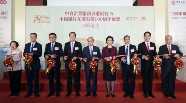 本网讯 为庆祝香港回归祖国20周年和中国银行在港服务100周年,由香港中国企业协会主办、中银香港承办的“同心同路创未来——中资企业服务香港展览”暨“百年中银与您同行——中国银行在港服务100周年展览”于6月26日下午在中银大厦举行开幕仪式。