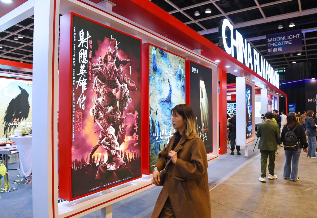 这是3月17日在香港国际影视展上拍摄的中国电影联合展台。新华社记者 陈铎 摄