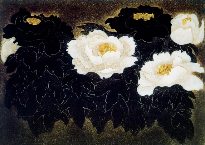 《黑牡丹、白牡丹》 / 郑爽 版画 / 56×74cm / 1984年 广东美术馆藏