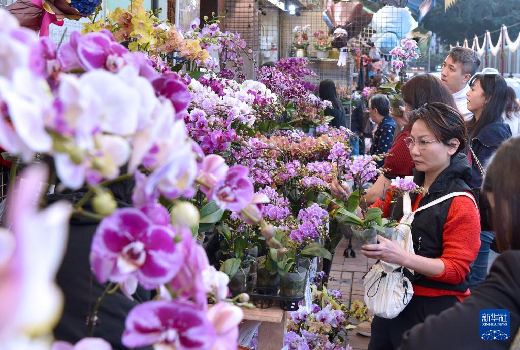2月4日,市民在香港旺角花墟选购鲜花。新华社记者 陈铎 摄