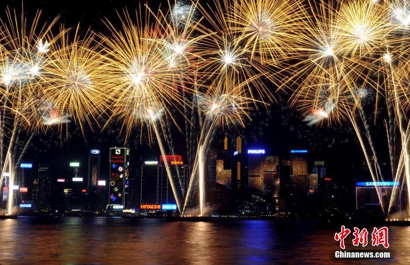 香港维港农历新年举行烟花汇演