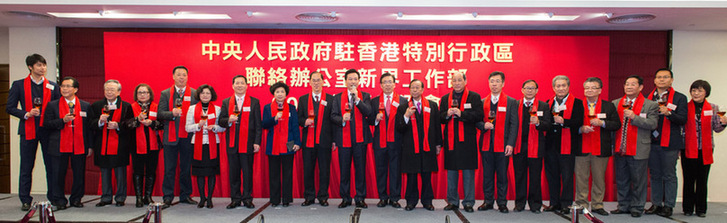 中联办新界工作部部长刘林在酒会上致辞。他说,在新的一年,新界工作部将认真贯彻中央在香港依法落实普选的意志,与广大爱国爱港人士一起,支持特区政府以“有商有量,实现普选”的务实态度推进政改,为实现香港长远的福祉尽应有的责任和义务;乘国家全面深化改革之风,充分发挥桥梁和纽带作用,促进香港与内地的交流合作,为实现两地的互补双赢出力;加强与社会各界的沟通联系,在爱国爱港原则下互信合作,支持特区政府依法施政,为香港同胞做好服务。