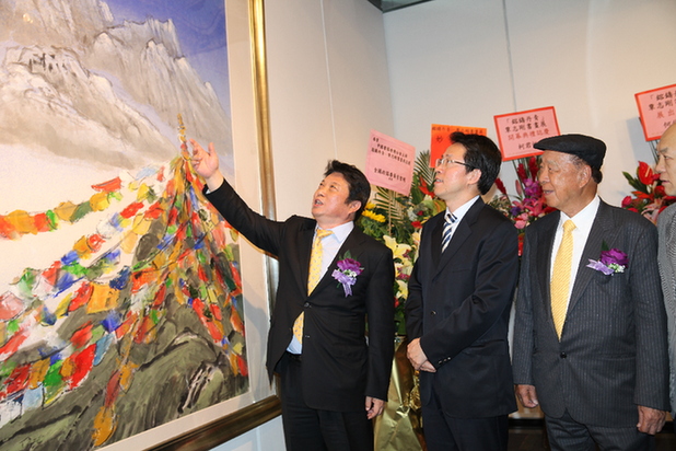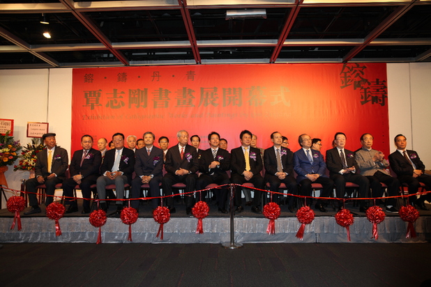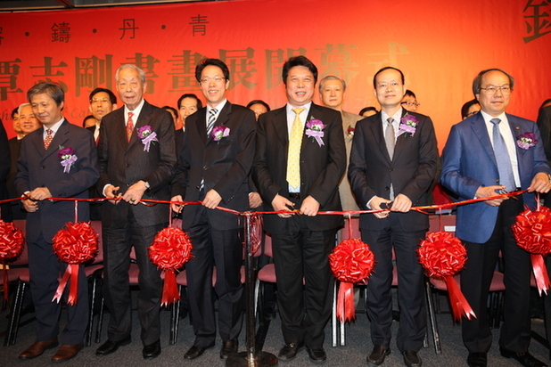 本网讯 4月21日下午,中央政府驻港联络办主任张晓明在副主任杨健的陪同下,在香港大会堂出席并主礼了全国政协常委、中国文联副主席覃志刚书画展开幕式。