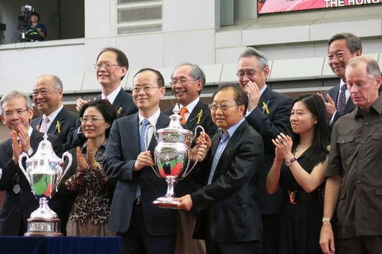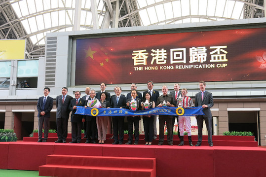 本网讯 7月1日下午,为庆祝香港回归祖国十七周年,香港赛马会在沙田马场举行“香港共庆回归赛马日”活动。我办副主任杨健、外交公署副特派员佟晓玲,行政会议召集人林焕光等应邀出席并为“回归杯”赛事颁奖。
