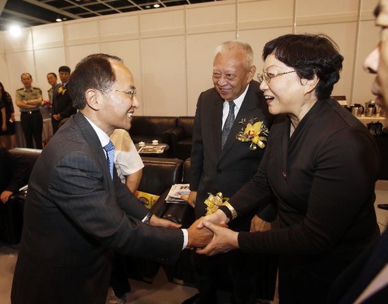 王志民副主任与董建华副主席、邓榕女士交谈(图片来源:中央政府驻港联络办)