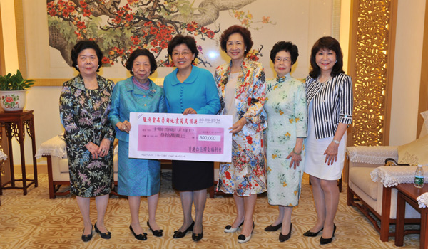 本网讯 9月30日上午,我办副主任殷晓静在办内会见了由90岁高龄的萧曾凤群主席率领的香港西区妇女福利会一行,并接受该会向云南鲁甸地震灾区捐款30万港元。下午,我办副主任林武接受苏东霖先生为云南鲁甸地震灾区捐款50万港元。