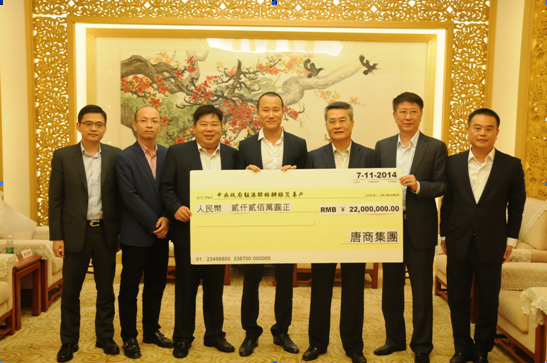 黄兰发副主任(右三)代表我办接受陈伟武向家乡捐赠人民币2200万元。(图片来源:中央政府驻港联络办)