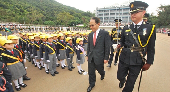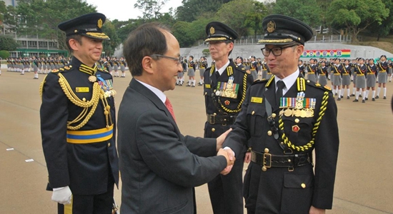 王志民副主任到操场巡视队伍。(图片来源:中央政府驻港联络办)