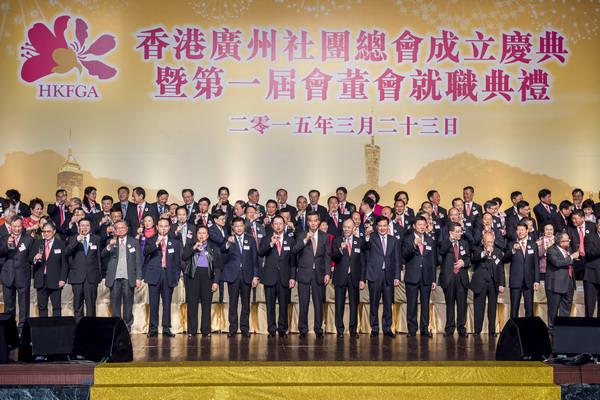 本网讯 3月23日,香港广州社团总会在香港会议展览中心大会堂举行成立庆典暨第一届会董就职典礼。香港特区行政长官梁振英,中央政府驻港联络办副主任林武,广东省委常委、统战部部长林雄,中央统战部三局局长郑钢淼,外交部驻港公署副特派员宋如安,广州市市长陈建华、市政协主席苏志佳等应邀出席并主礼。