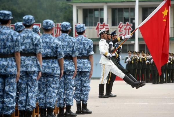 第十一届香港青少年军事夏令营开营仪式升旗典礼。(图片来源:中新社)