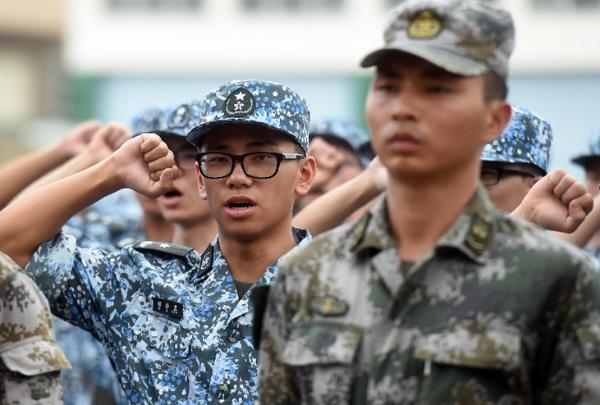 第十一届香港青少年军事夏令营学员宣誓。(图片来源:中新社)
