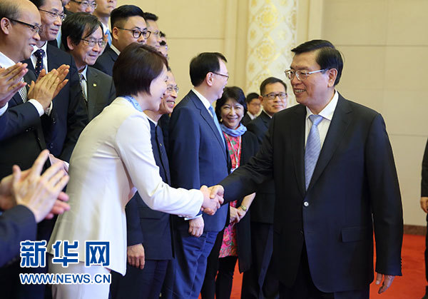 中共中央政治局常委、全国人大常委会委员长张德江24日上午在人民大会堂会见了以李慧琼主席为团长的香港民主建港协进联盟访京团。