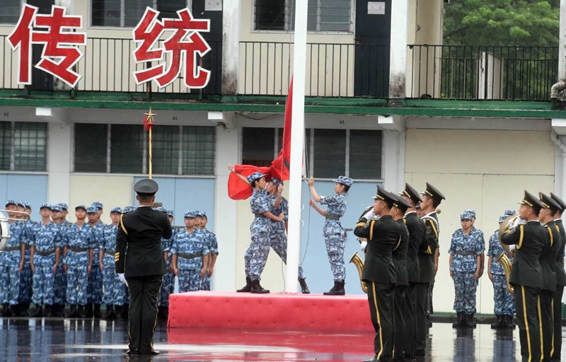 第五届军事生活体验营业营典礼升旗仪式。(图片来源:中央政府驻港联络办)