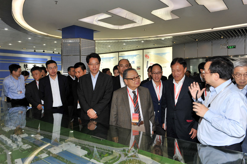 比亚迪总裁王传福向考察团介绍企业发展情况