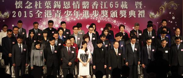 张晓明还勉励获得“2015全港青少年进步奖”的60位学生,以杜叶锡恩为做人、做事的榜样,健康成长、成材,以告慰老人家在天之灵。