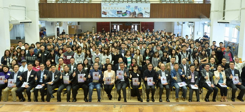 嘉宾与参加活动的学生合影。(图片来源:中央政府驻港联络办)