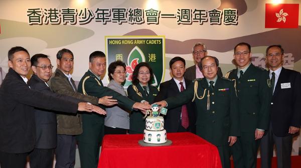 主礼嘉宾主持香港青少年军总会一周年会庆切蛋糕仪式。(图片来源:中央政府驻港联络办)