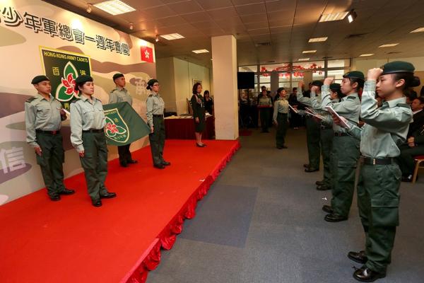 本网讯 1月17日,香港青少年军总会举办一周年会庆,中央政府驻港联络办副主任仇鸿、驻港部队副司令员廖正荣与青少年军总司令、行政长官夫人梁唐青仪一同主礼。青少年军会员及其他制服团体代表、驻港部队官兵、中学校长、家长200余人参加活动。100多名青少年军会员现场重温入会誓词,场面热烈。