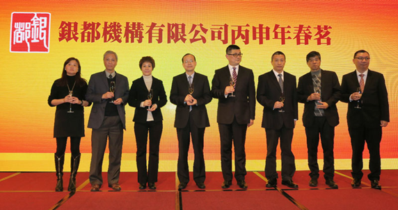 杨健和各位嘉宾共同主礼银都机构2016春茗活动。(图片来源:中央政府驻港联络办)
