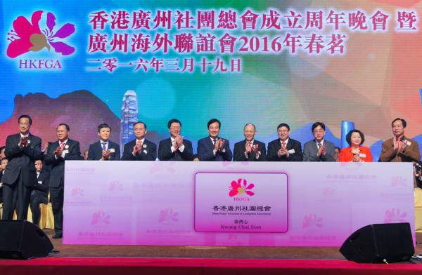 本网讯 3月19日,香港广州社团总会成立周年晚会暨广州海外联谊会2016年春茗在香港会议展览中心举行。香港特区政府政务司司长林郑月娥、中央政府驻港联络办副主任林武、外交部驻港公署副特派员宋如安、广州市政协主席苏志佳、广东省委统战部副部长李焕春等嘉宾出席并主礼。