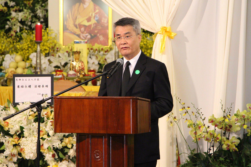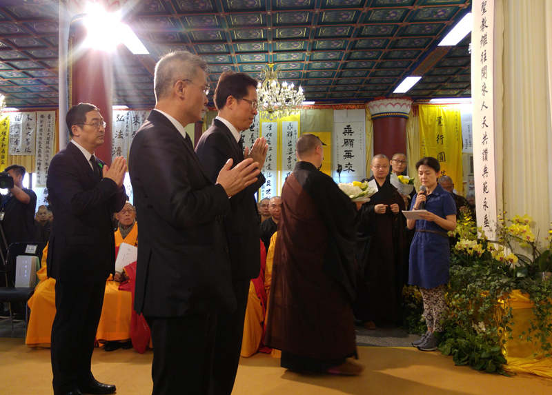 本网讯 5月12日上午,香港佛教联合会荣誉会长永惺长老圆寂追思赞颂仪典在荃湾西方寺举行。我办主任张晓明、副主任黄兰发,香港特区行政长官梁振英,国家宗教局副局长陈宗荣,中国佛教协会副会长演觉、明生、觉醒法师,香港六宗教领袖等应邀出席,来自两岸四地及美国、加拿大等国家的佛教界高僧大德、四众弟子及社会各界知名人士一千多人参加活动。