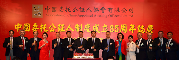本网讯 6月23日晚,香港中国委托公证人协会举行中国委托公证人制度建立35周年庆祝活动,我办副主任黄兰发应邀担任主礼嘉宾并致辞。共襄主礼的有国家司法部副部长赵大程、香港特区律政司司长袁国强等。300多名中国委托公证人及社会各界人士出席活动。