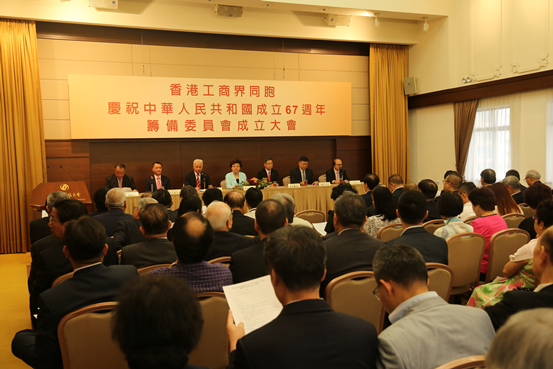 本网讯 8月3日下午,香港工商界同胞庆祝中华人民共和国成立67周年筹备委员会成立大会在香港中华总商会礼堂举行,我办副主任殷晓静应邀出席并致辞。香港中华总商会会长杨钊等香港工商界知名人士150余人参加会议。