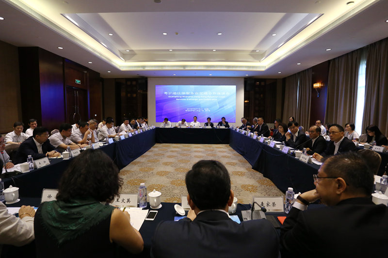 本网讯 8月16日上午,“粤沪港法律服务业交流合作座谈会”在深圳麒麟山庄举行。司法部副部长赵大程、中央政府驻港联络办副主任黄兰发、香港特区律政司司长袁国强出席并致辞。北京、上海、广东、福建、深圳等地司法行政部门和中华全国律师协会的相关领导出席会议,广东省司法厅和上海市司法局分别介绍了对港法律服务业交流合作取得的成绩及经验。来自香港大律师公会、香港律师会、香港国际仲裁中心、中国委托公证人协会、香港中小型律师行协会、香港与前海横琴地区合伙联营律所等20多位香港律师界代表出席了座谈会,就进一步加强两地法律服务业交流合作提出意见和建议。