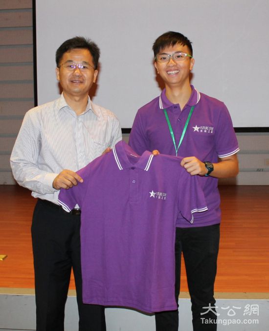 香港大公文汇传媒集团董事、未来之星同学会执行主席姜亚兵(右)及学员代表向清华大学对外学术文化交流中心主任张磊(左)致送“未来之星”水晶牌。(江鑫娴 摄)