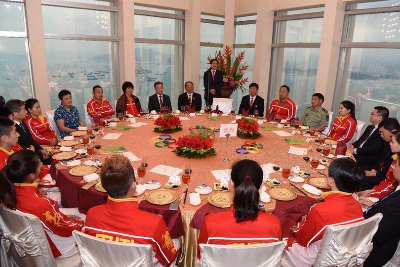 本网讯 中央人民政府驻香港特别行政区联络办公室29日举行午宴,欢迎以国家体育总局局长刘鹏为团长的里约奥运会内地奥运精英代表团访港。