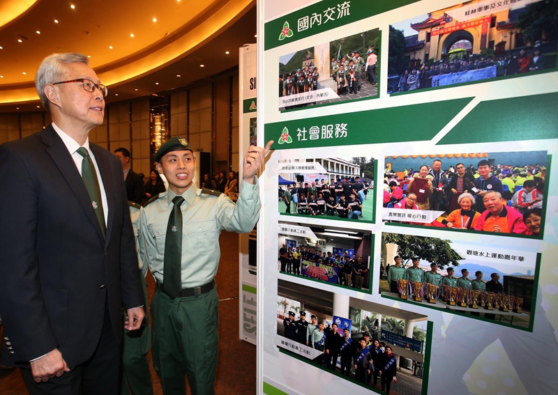 青少年军会员介绍总会活动。(图片来源:中央政府驻港联络办)