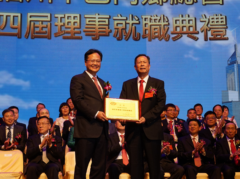陈冬副主任颁发总会长荣任证书(图片来源:中央政府驻港联络办)