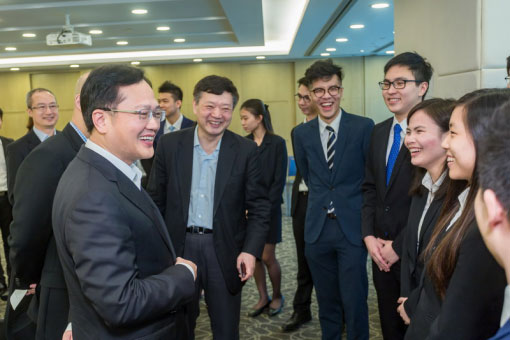 陈冬与香港大学生进行交流。(图片来源:中央政府驻港联络办)