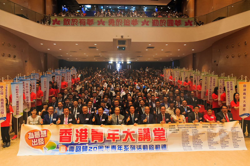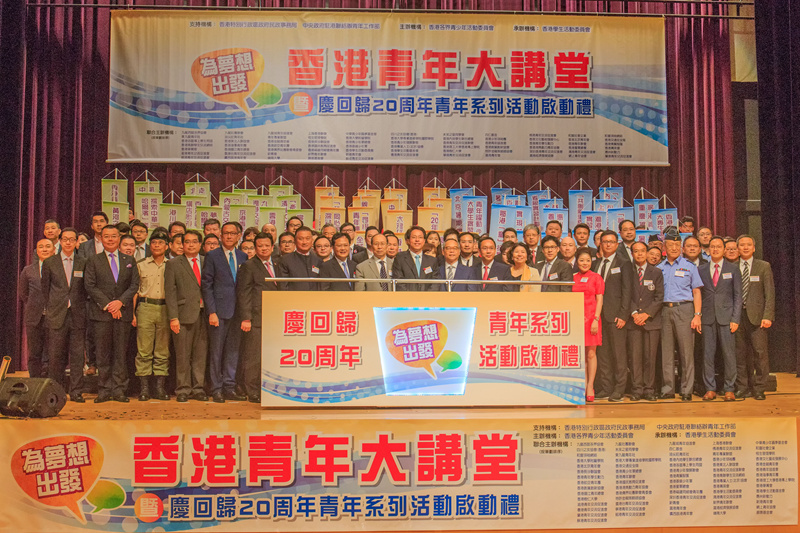 本网讯 6月6日,“为梦想出发”香港青年大讲堂暨庆回归20周年青年系列活动启动礼在培正小学钱涵洲纪念楼举行,我办主任张晓明、副主任陈冬,特区政府民政事务局局长刘江华等应邀主礼。该活动由香港各界青少年活动委员会等70多家青年团体联合主办,1000余名青年学生出席。
