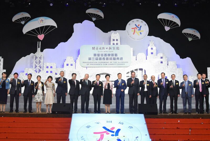 本网讯 6月10日晚,香港新家园协会关爱慈善晚会暨第三届会长会就职典礼在香港会展中心举行。我办副主任陈冬应邀出席,与全国政协副主席董建华,全国政协副主席、香港特区行政长官梁振英,候任行政长官林郑月娥,立法会主席梁君彦等嘉宾共同主礼,并向新家园协会赠送张晓明主任亲笔题词“四海一家”。