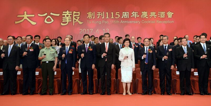 本网讯 6月13日,《大公报》举行创刊115周年庆典酒会,我办副主任杨健应邀出席,与全国政协副主席、行政长官梁振英,侯任行政长官林郑月娥等共同主礼。来自社会各界的800多位知名人士参加了活动。