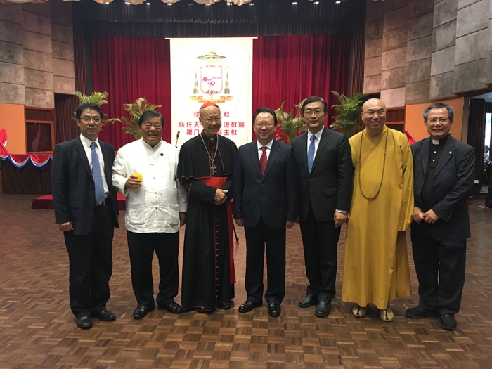 谭铁牛副主任等与天主教、孔教、佛教领袖合影(图片来源:中央政府驻港联络办)
