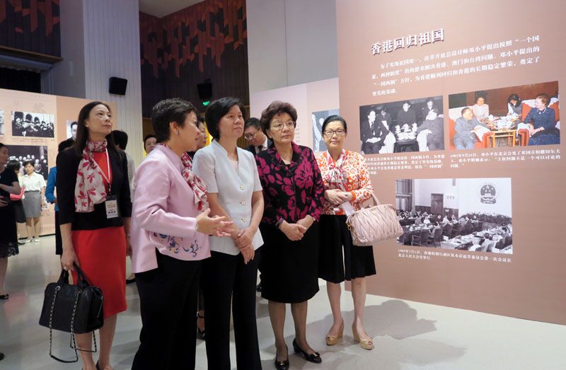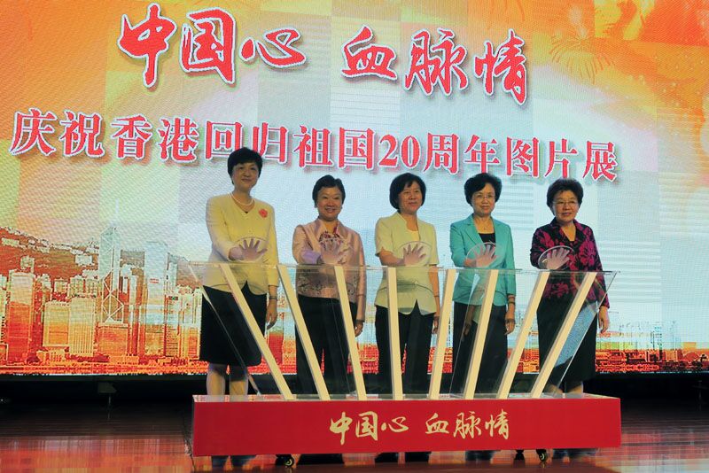 本网讯 8月9日,港区妇联代表联谊会在北京中国妇女儿童博物馆举办香港回归祖国二十周年“中国心 血脉情”图片展开幕式,我办副主任殷晓静与全国人大常委会副委员长、全国妇联主席沈跃跃,全国妇联党组书记、副主席、书记处第一书记宋秀岩,全国妇联副主席、书记处书记、中国妇女儿童博物馆馆长邓丽等主礼开幕式并为展览揭幕。