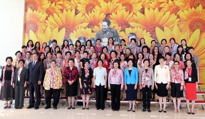 沈跃跃副委员长与港区妇联代表联谊会访问团合影。(图片来源:中央政府驻港联络办)