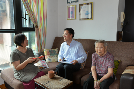 张晓明主任与黄福荣的母亲和姐姐亲切交谈。(图片来源:中央政府驻港联络办)