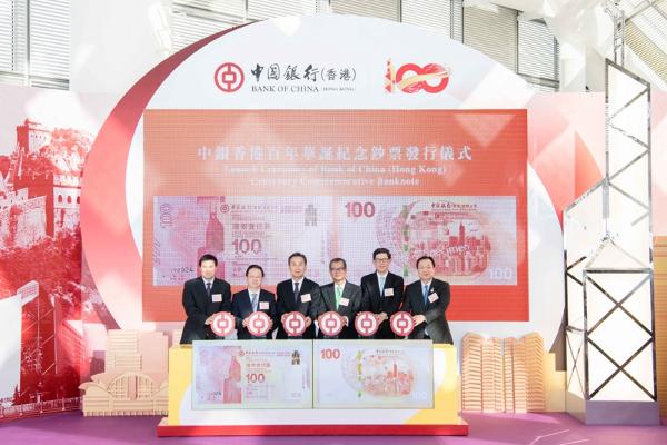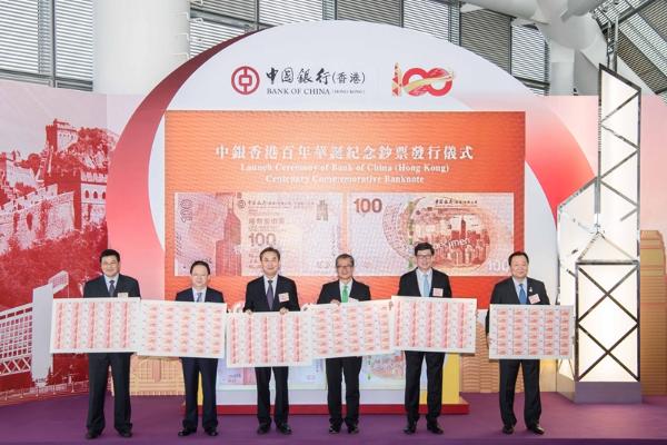 今年是中国银行在香港服务100周年。经过百年发展,中银香港已成为拥有全香港最大分行网络和多元化服务渠道的主要商业银行集团,也是香港三家发钞行之一和唯一的人民币清算行。为庆祝中国银行在港服务100 周年,中银香港专门面向公众发行500万张面值为100港元的纪念钞票,以展现中国银行在港服务百年的辉煌历程,以及为维护香港金融稳定和促进经济繁荣所作出的贡献。