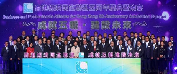 本网讯 12月12日晚,香港经济民生联盟在香港会展中心举行五周年庆典暨晚宴,我办副主任谭铁牛与香港特区行政长官林郑月娥、外交部驻港特派员公署副特派员杨义瑞、特区政府政务司司长张建宗、特区政府律政司司长袁国强等共同担任主礼嘉宾。近800名香港社会各界人士参加活动。