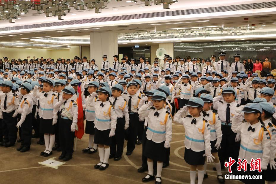 1月13日,香港升旗队总会“2018年幼儿队伍周年检阅礼”在香港举行。此次检阅礼希望帮助在场幼儿队员及社会大众加深认识升旗礼仪,加强对国民身份的认同。图为幼儿队伍旗手在国旗下宣誓。 中新社记者 谢光磊 摄