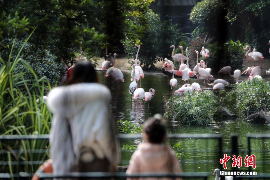 1月23日,游客在观赏火烈鸟清洗羽毛,姿态优美。香港九龙公园是九龙区最大的公园之一,拥有一大片绿油油的树林,吸引大量鸟类栖息。除了树木外,九龙公园还有多个喷水池、一个鸟湖和一个中式的庭院。鸟湖包括大型红鹳池塘和较小的水禽池塘。两个池塘均遍植花木,合共饲养了约6个不同品种的130多只雀鸟,其中以大小红鹳最引人注目。鸟湖现已成功繁殖了大红鹳。这个远离繁华闹市的和谐生态园,吸引许多市民和游客。中新社记者 洪少葵 摄