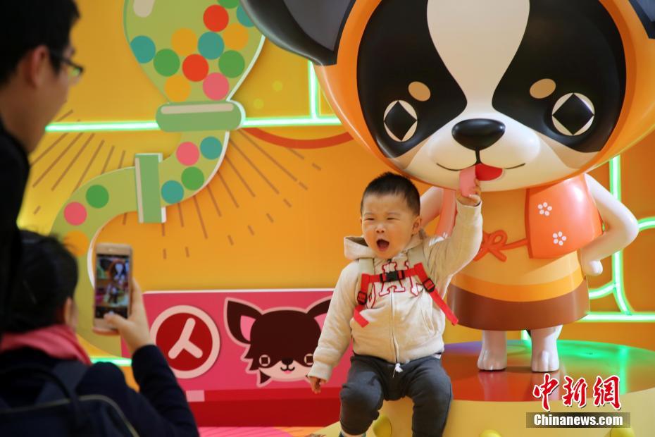 1月30日,香港皇室堡商场的新春装饰吸引小朋友开心留影。临近农历新年,香港各区纷纷装饰一新,营造喜庆的节日气氛,吸引市民和访港游客。中新社记者 洪少葵 摄