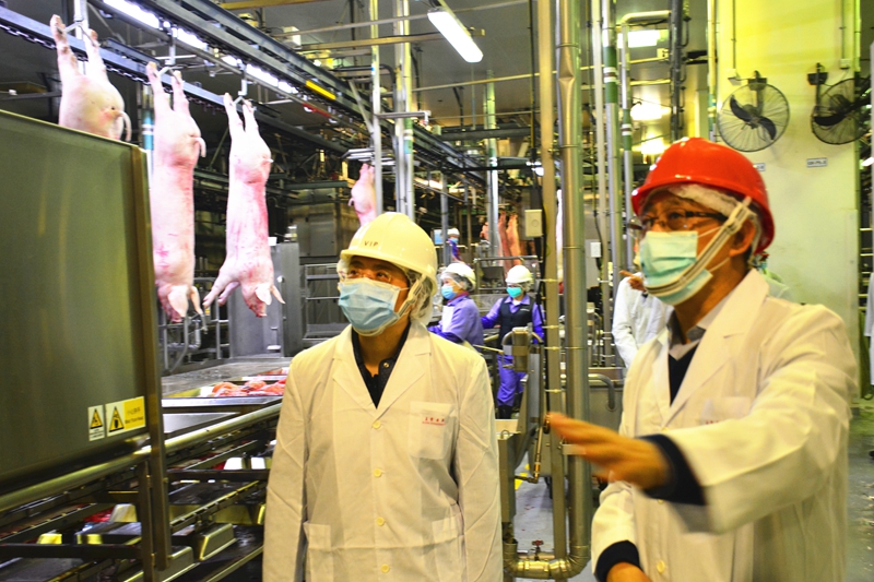 仇鸿副主任调研华润五丰行上水屠房。(图片来源:中央政府驻港联络办)