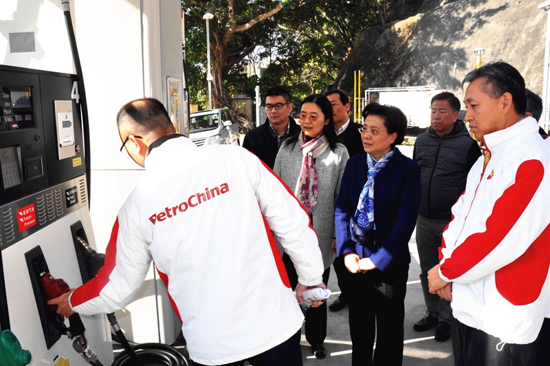 仇鸿副主任了解加油站运营管理、安全防范和环境保护等措施。(图片来源:中央政府驻港联络办)