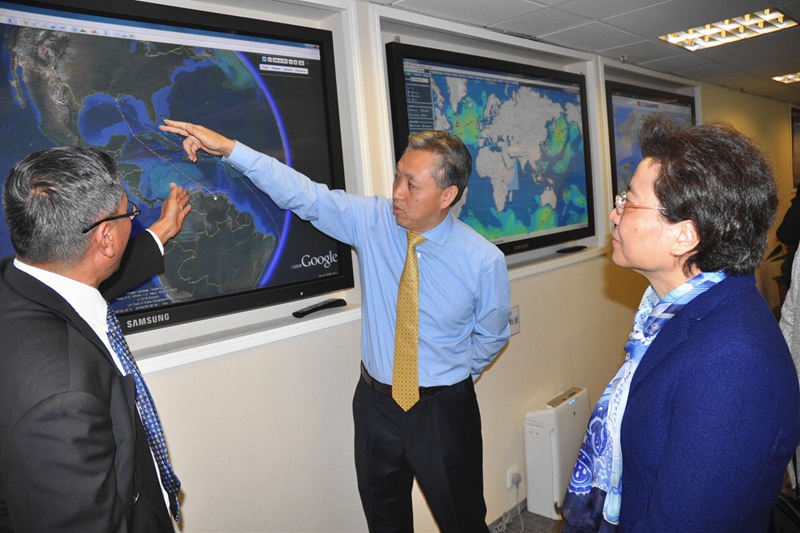 仇鸿副主任(右)到中国石油(香港)有限公司调度中心调研。(图片来源:中央政府驻港联络办)